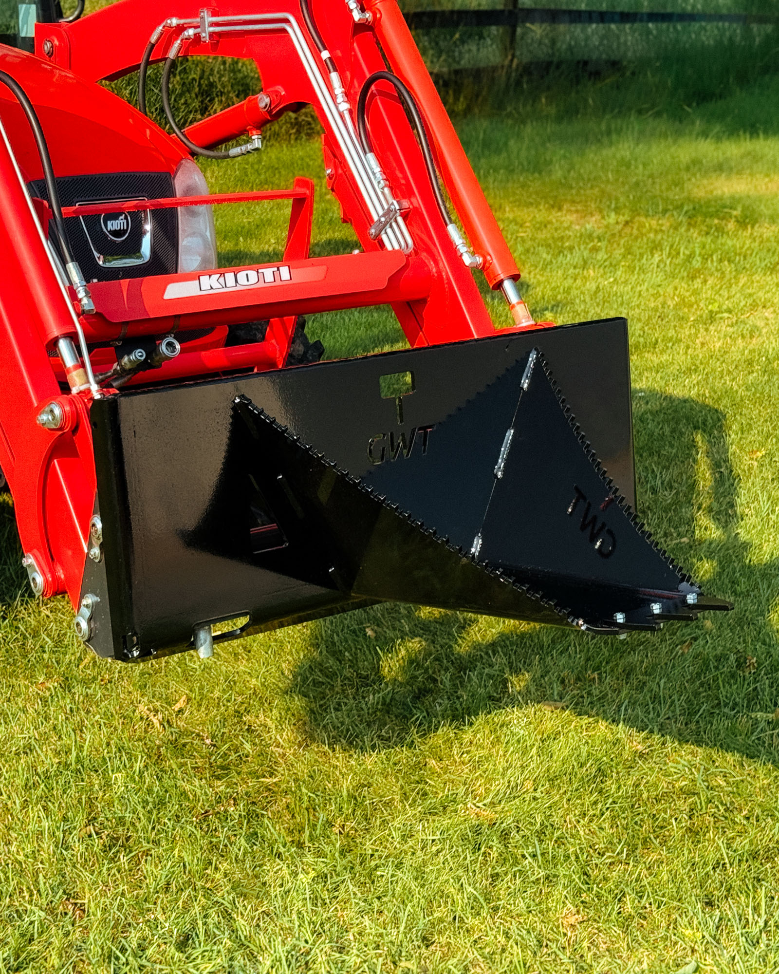 Our Heavy Duty Wrecker stump bucket is roughly 50% heavier and deeper than our Mini Wrecker, built for all compact tractors, and delivers more reach, more teeth, and more digging power.