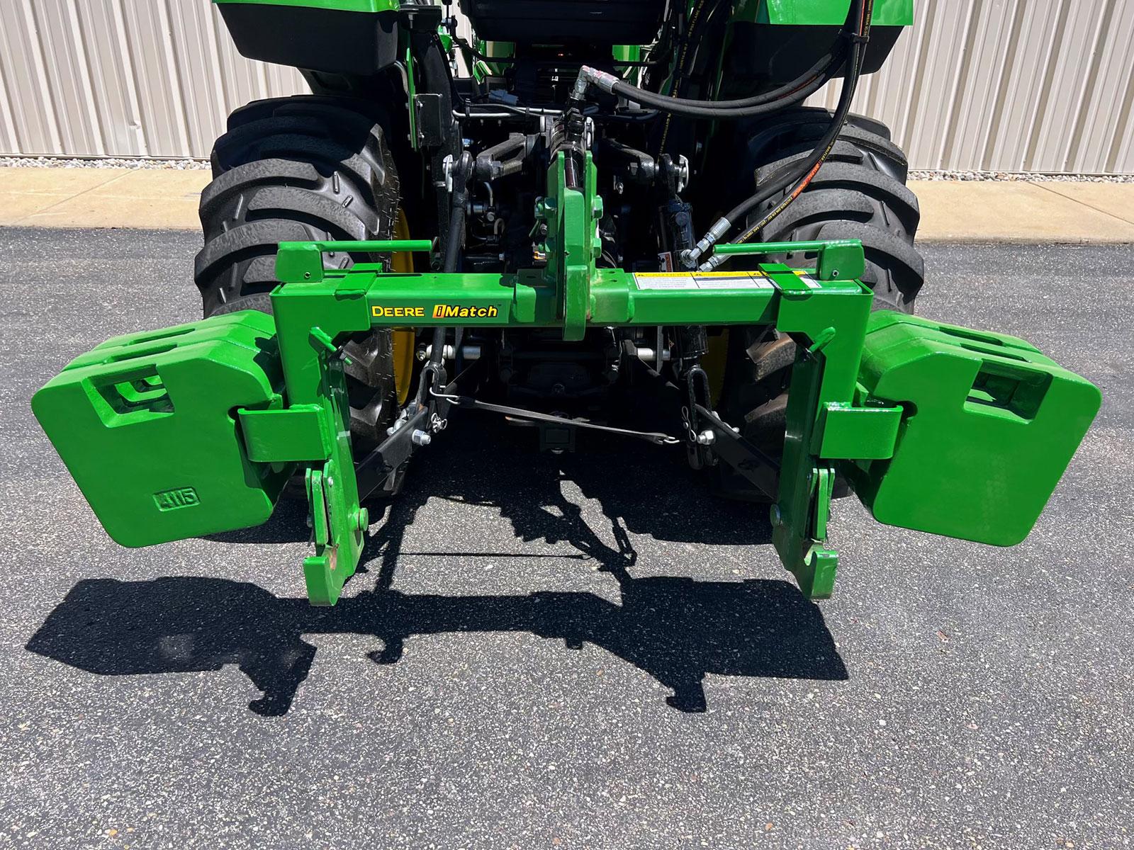 The answer to this is tractor specific, but your manual might indicate the recommended rear ballast or counterweight to balance against your front-end loader. This can be in the form of liquid ballast in you wheels, wheel weights, and the weight of the rear attachment itself. But often this is not enough weight to hit the manufacturer recommended total.