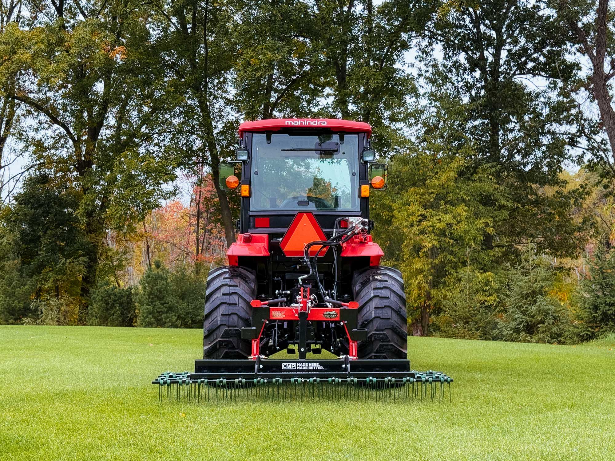 You no longer need to take wide turns to make sure your pull-behind dethatcher tongue clears, this 3-point beauty mounts tight and turns with you.